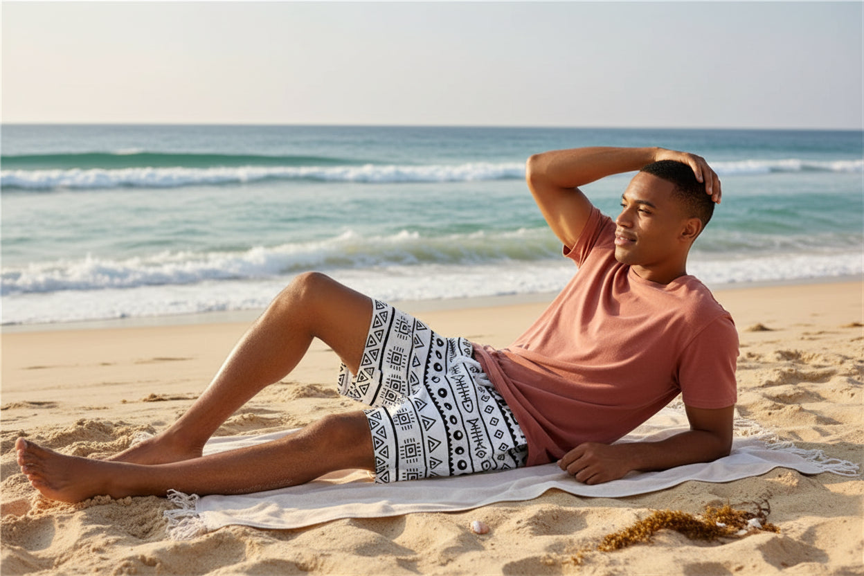Whether you're hitting the waves, lounging poolside, or exploring coastal streets, these geometric print shorts deliver standout style. The oversized fit and bold patterns make these swim trunks perfect for the fashion-conscious beachgoer who wants to make an impression.